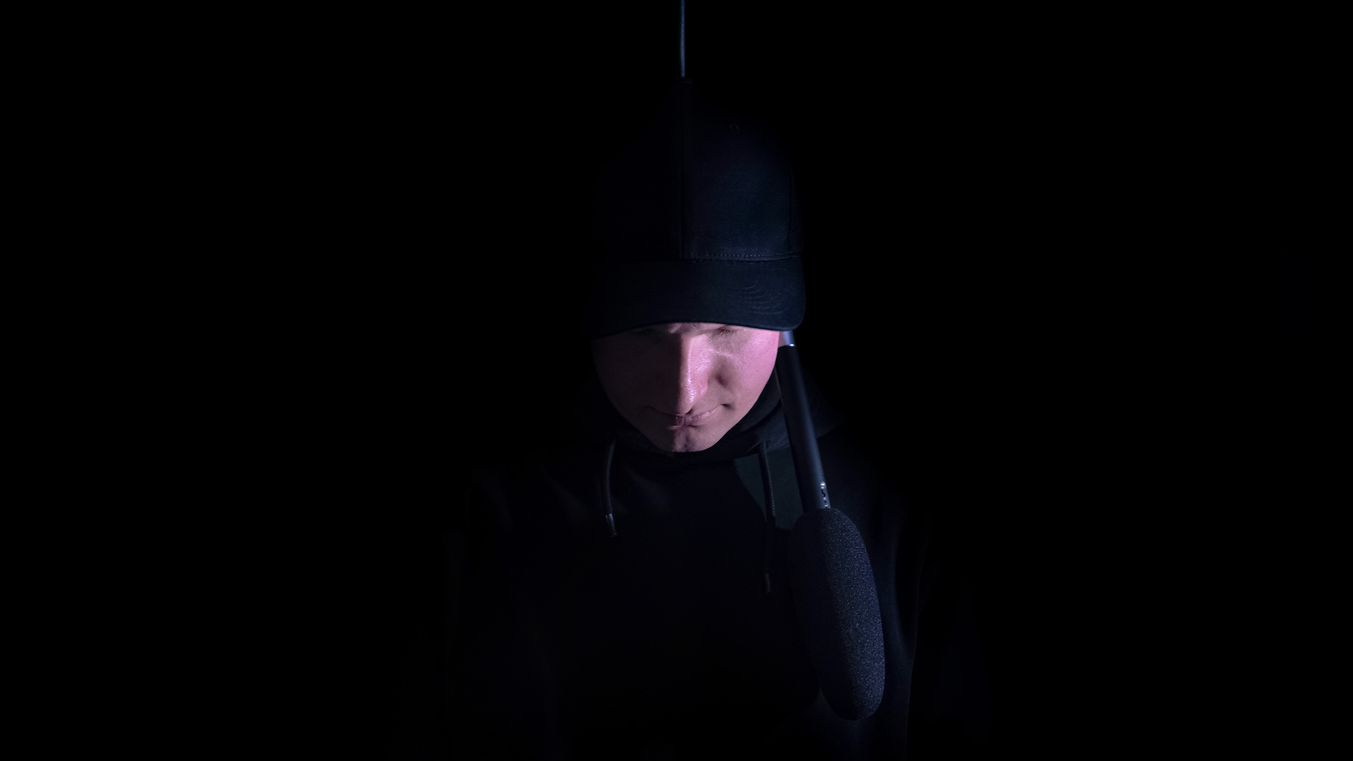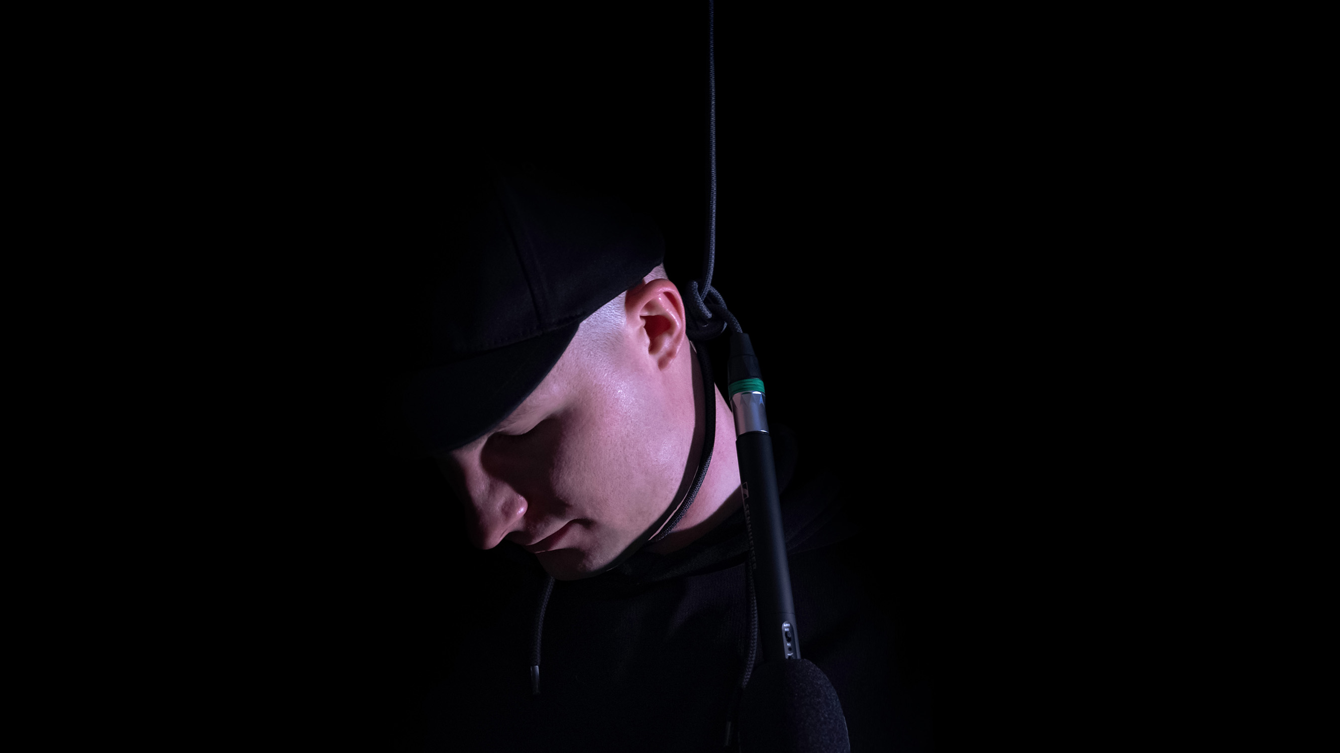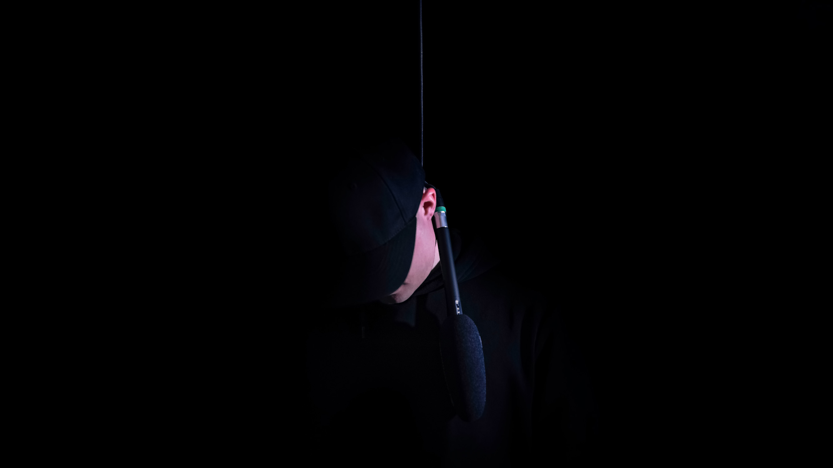 An artist. A microphone. A body hanging in the void.